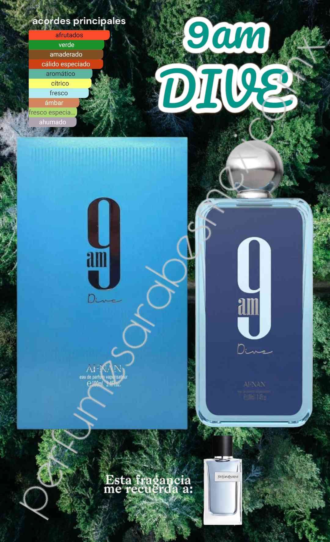 9am Dive de Afnan es una fragancia de la familia olfativa Aromática Acuática para Hombres y Mujeres. Esta fragancia es nueva. 9am Dive se lanzó en 2022.