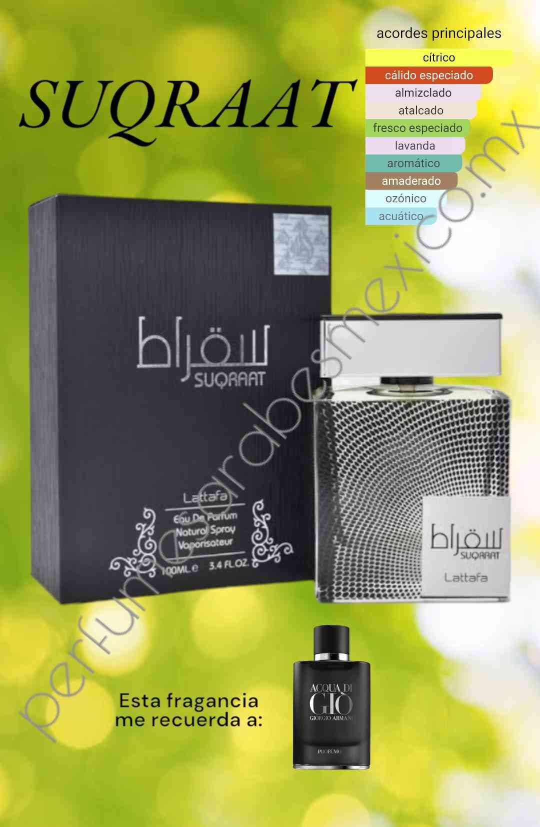 Déjate llevar por el encanto encantador de Suqraat de Lattafa, una fragancia que trasciende el tiempo y cautiva los sentidos. Sus notas iniciales de acordes marinos y bergamota crean una refrescante brisa marina que vigoriza el alma. El corazón, adornado con la riqueza del romero, la salvia y el geranio, despliega una sinfonía de hierbas que infunde sofisticación. A medida que la fragancia se asienta, las notas de fondo persistentes de incienso y pachulí tejen un tapiz de misterio y seducción. Eleva tus sentidos con Suqraat, un viaje a una obra maestra olfativa que susurra elegancia y llama la atención.